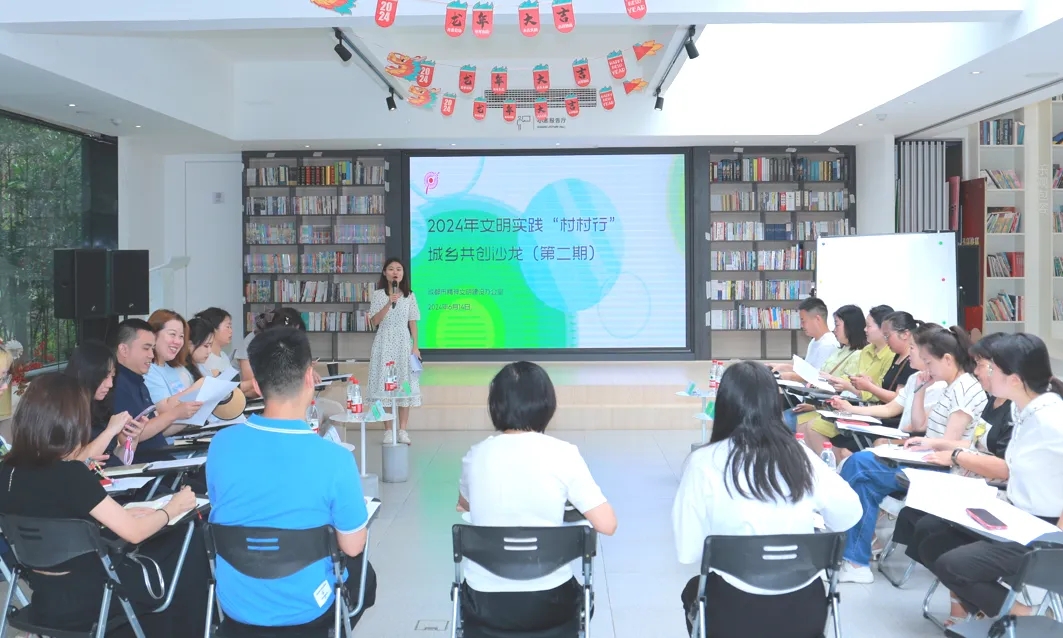6月14日,成都市文明办主办的文明实践“村村行”城乡共创沙龙第二期活动在“山上·文明里”新时代文明实践公园“阳光里”大厅举行。