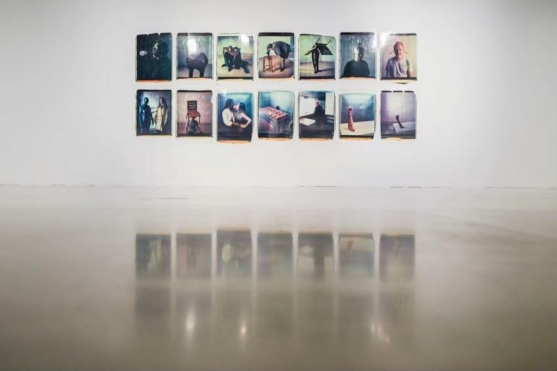 此外,三楼展厅中央呈现的是欧文·沃姆的日常物品拟人化之作。那些永不停止行走的四肢、神经质的身体,或者被抽离中空的衣物外壳,就像一个个梦游者般伫立于展厅之中。例如,用毛衣包裹住的雕塑,仿佛被赋予了不一样的灵动质感,而或动或静的包袋拟人雕塑,则展现了不一样的雕塑状态。在展墙上,则是老派“拍立得”记录下的雕塑瞬间。