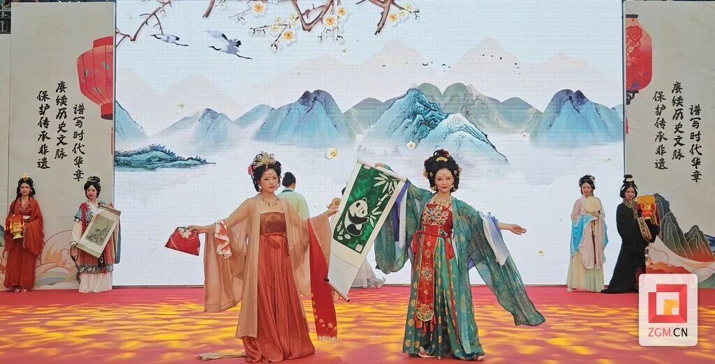 舞台中央的非遗节目展演,四周的非遗购物节、美食集市、非遗集市、文创手工产品集市、非遗传习,通过静态展示、活态展演、互动体验,让非遗可看、可听、可触、可感。