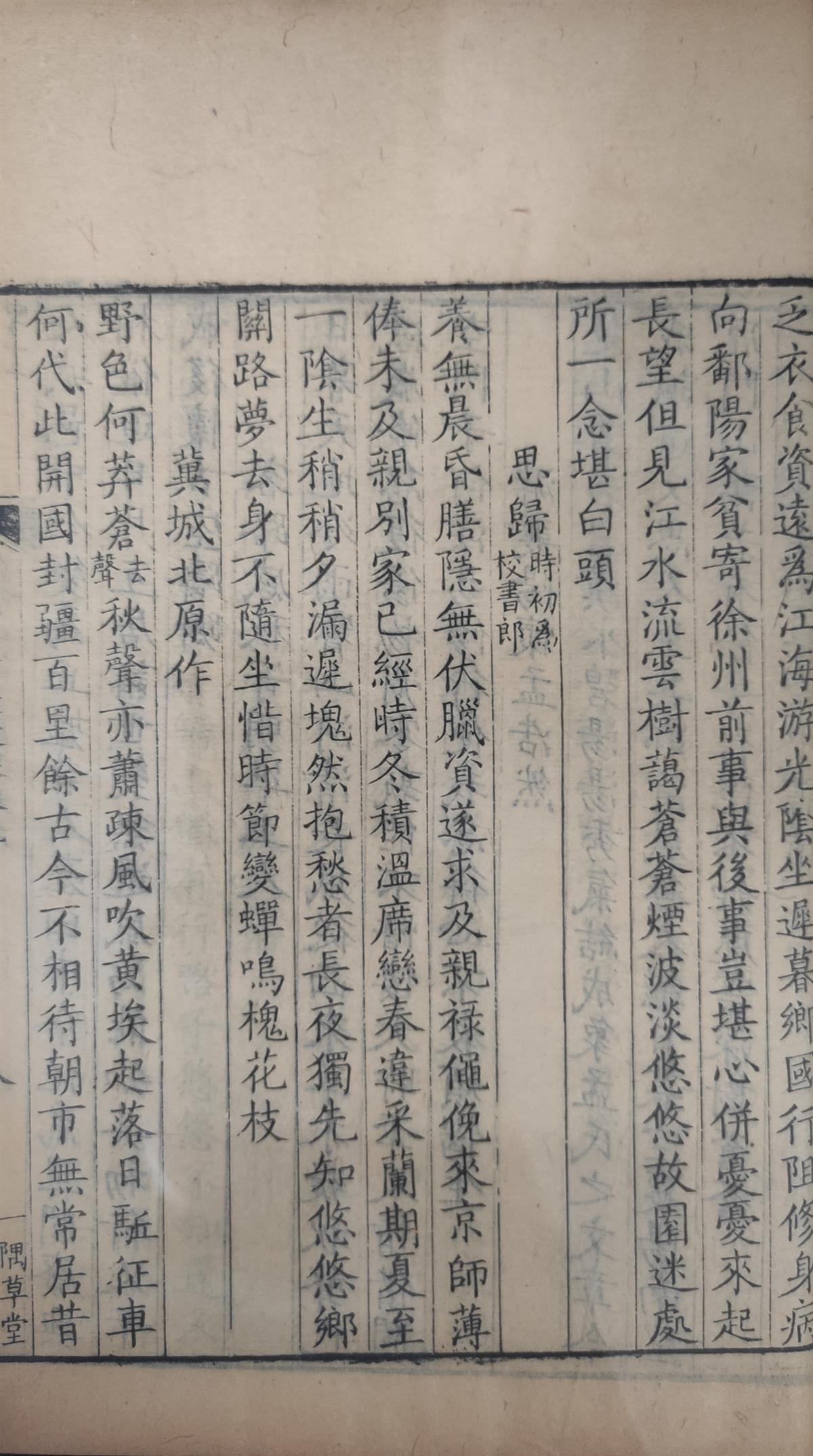 白氏长庆集,《思归(时初为校书郎)》,清一隅草堂刻本,武汉图书馆藏