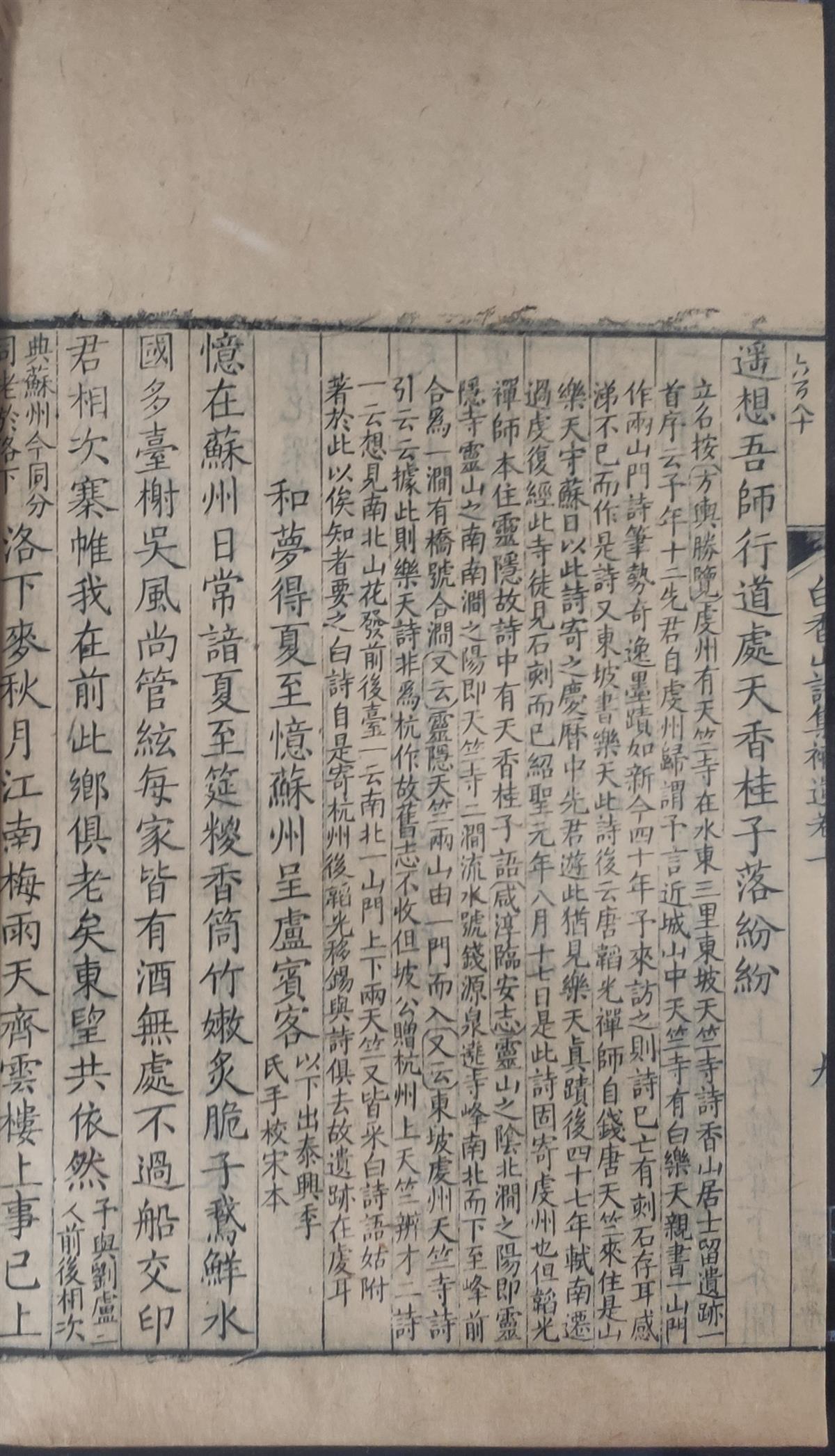 白氏长庆集,《和梦得夏至忆苏州呈卢宾客》,武汉图书馆藏