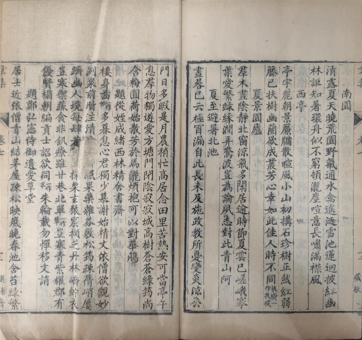 韦苏州集, 《夏至避暑北池》,清胡丹凤退补斋影宋嘉祐刻本, 武汉图书馆藏