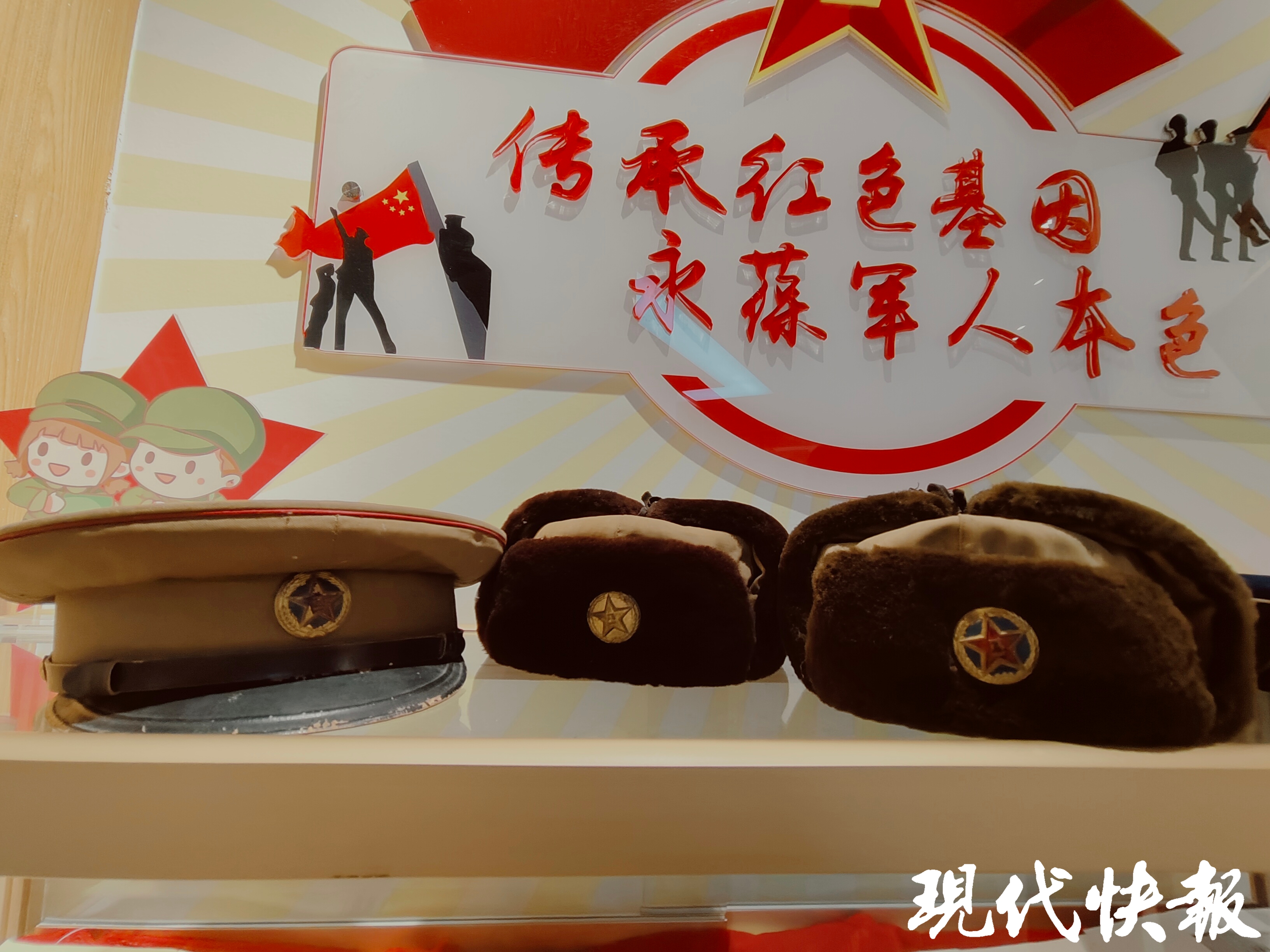 “棉帽上还有血迹,可能是当时戴帽子的战士有伤。”周伟告诉记者,这些军帽有“50式”“55式”“65式”,各有特点,见证着我国军服军帽的演变。比如:“50式”陆军军帽就是红五角星帽徽,而“55式”在此基础上增加了麦穗齿轮等元素,更有设计感。