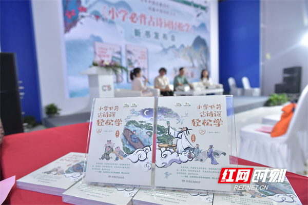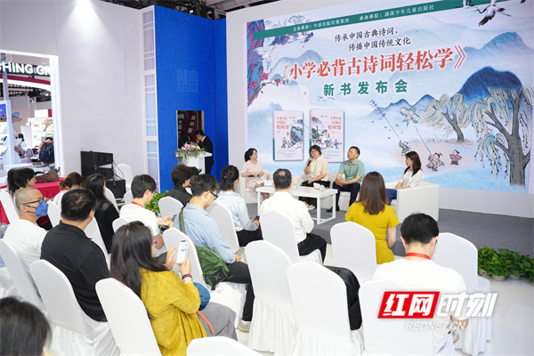 红网时刻新闻6月22日讯(记者 蔡娟 摄影 李丹)传承中国古典诗词,传播中国传统文化。6月21日,第三十届北京国际图书博览会(BIBF)期间,一场备受瞩目的新书发布会在湖南出版展台举行,《小学必背古诗词轻松学》首发亮相。
