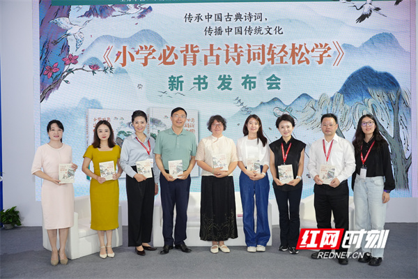 发布会上,作者冷林蔚,湖南出版集团、中南出版传媒集团、湖南少年儿童出版社等相关负责人共同为《小学必背古诗词轻松学》首发揭幕。