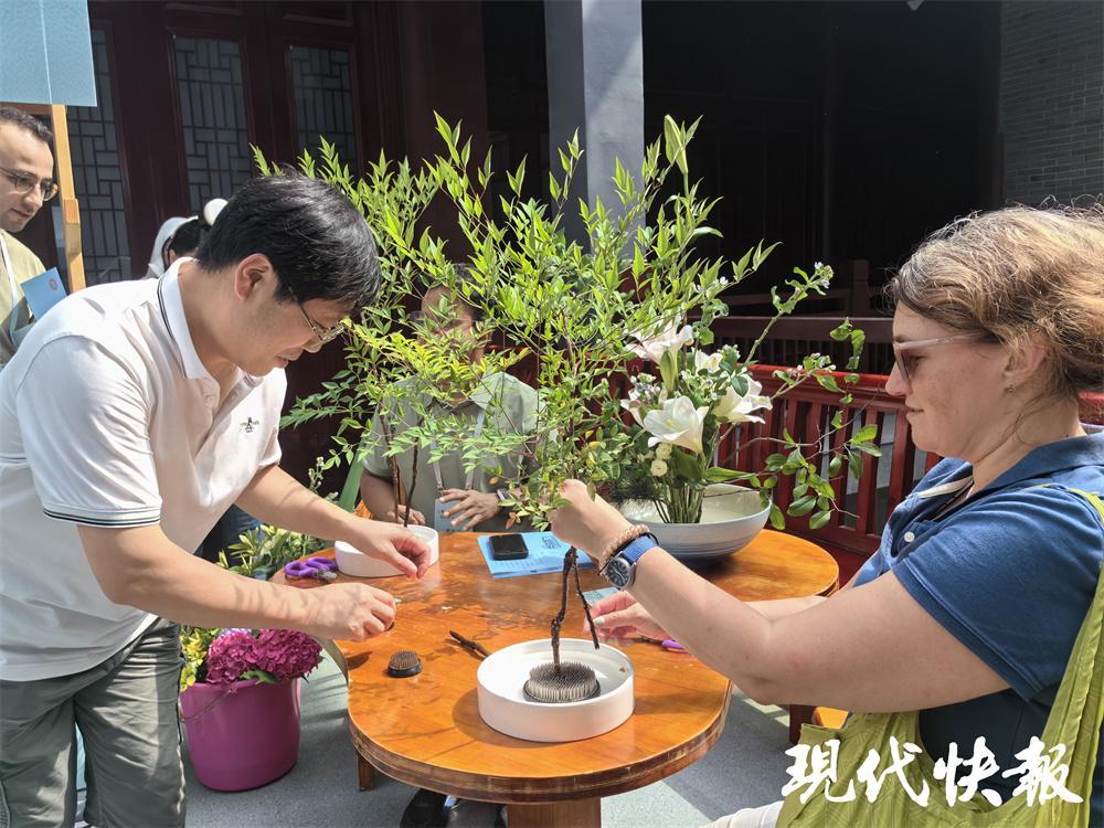 来自加拿大的露易丝女士,在尝试广陵插花时不禁感叹:“泰兴插花与我接触过的西方插花很不同。这也是我第一次接触东方的插花艺术。有机会我一定要带家人再来看看!”