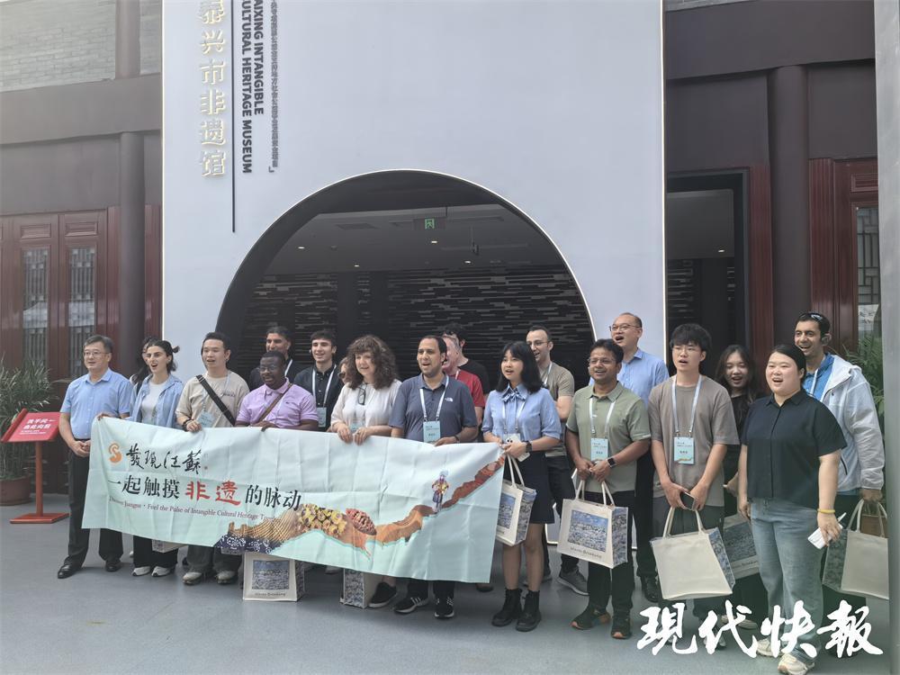现代快报讯(通讯员单友健徐路记者毛晓华)木雕、广陵插花、泰兴花鼓、制作黄桥烧饼……6月20日至21日,2024年“发现江苏·一起触摸非遗的脉动”系列活动第二场活动走进泰兴。来自意大利、美国、英国等国家的20余名外籍友人一起触摸非遗的脉动,探寻历史变迁,感受文化底蕴。