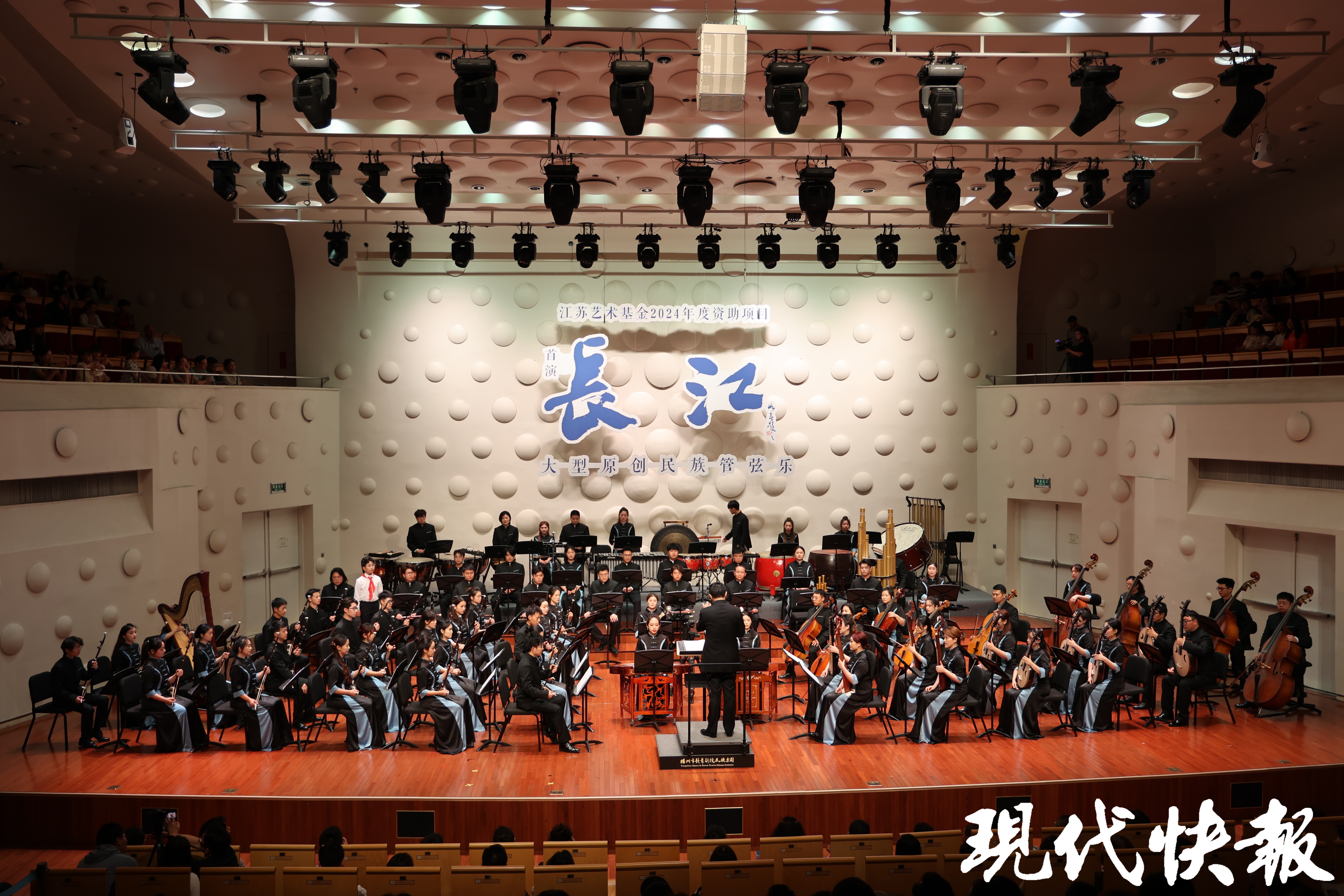 现代快报讯(通讯员 运投轩 记者 顾潇)6月23日晚,大型原创民族管弦乐《长江》在扬州市音乐厅首演。演奏者们用美妙的音符深情礼赞母亲河,用音乐作品讲好新时代长江故事、中国故事。据悉,这是扬州史上第一部大型音乐作品,也是2024年度江苏艺术基金资助项目。