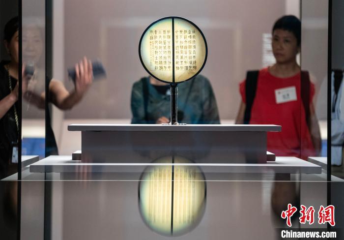 图为国家三级文物、清代“嵌沉香木雕芝兰图团扇”展品。