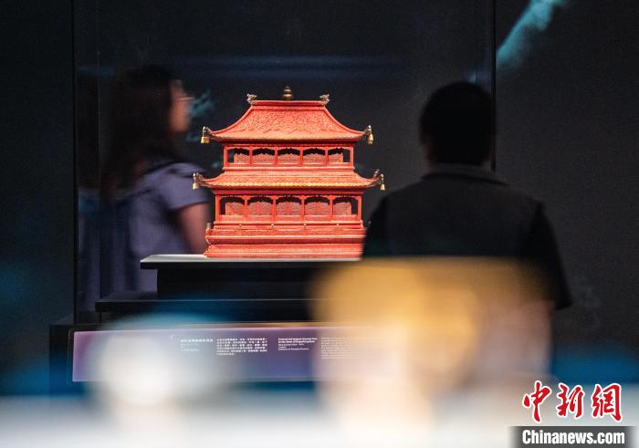 图为国家三级文物、清代“剔红重檐庑殿形香盒”展品。