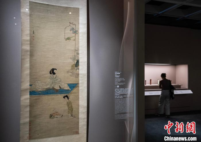 图为国家一级文物、陈洪绶《斜倚薰笼图》展品。