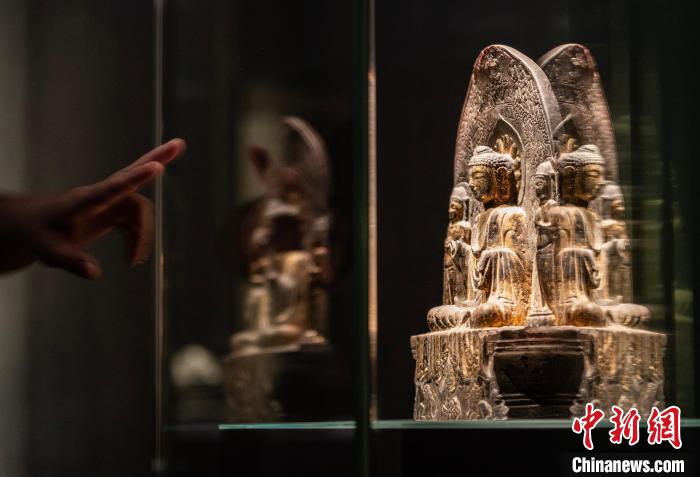 图为国家一级文物、南北朝南梁“释慧影造释伽牟尼佛漆金石像”展品。
