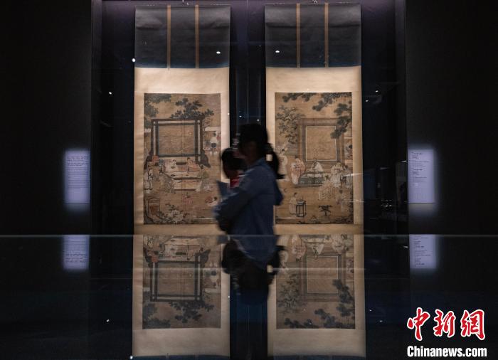 图为国家二级文物、明代“十八学士图”(书图、琴图)展品。