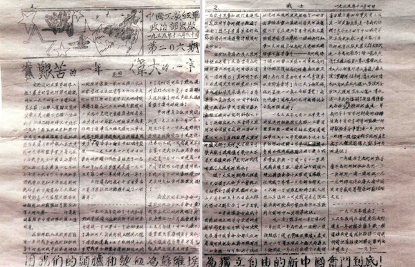1935年9月,红一军团改用“中国工农红军政治部”的名义继续出版《战士》报,目前发现的第193期(9月20日)、194期(9月27日)及195期(9月30日),保存在中央军委办公厅档案馆。丁晓平认为,民间收藏家手中发现的1935年12月30日出版的第206期《战士》报是目前发现的最后一期,刊登了红一军团政治部主任朱瑞的《艰苦的一年,伟大的一年》一文,是第一篇完整叙述中央红军长征整个历程的文献。(图6)