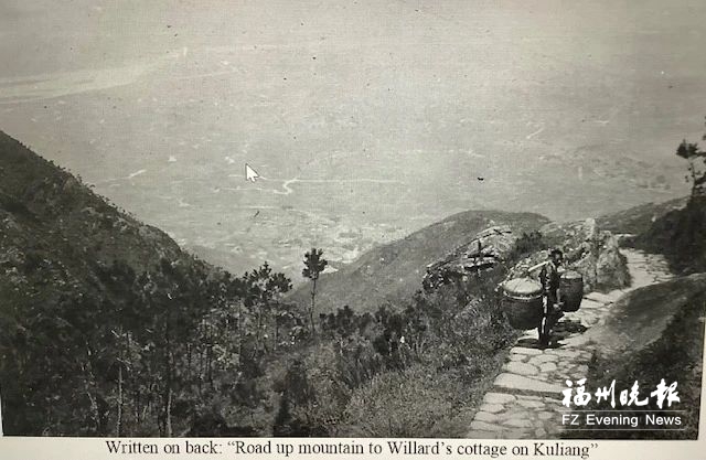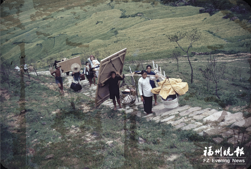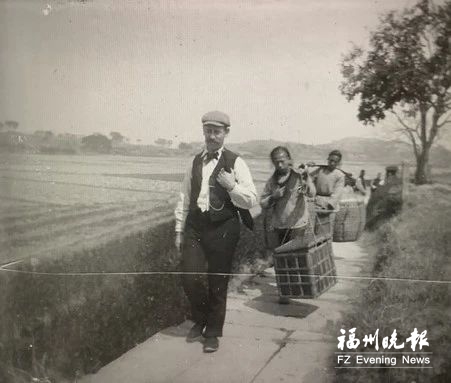 ▲鼓岭挑夫在崎岖不平小道挑着担去裨益知别墅(来源:裨益知家族)。