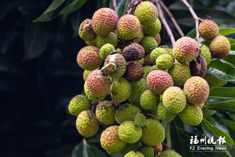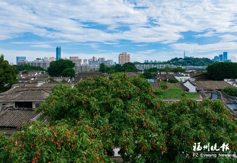 三坊七巷光禄吟台旁的构树林里,藏着一株古荔枝树。入夏后,这株荔枝树上已经挂满了令人垂涎欲滴的果实。