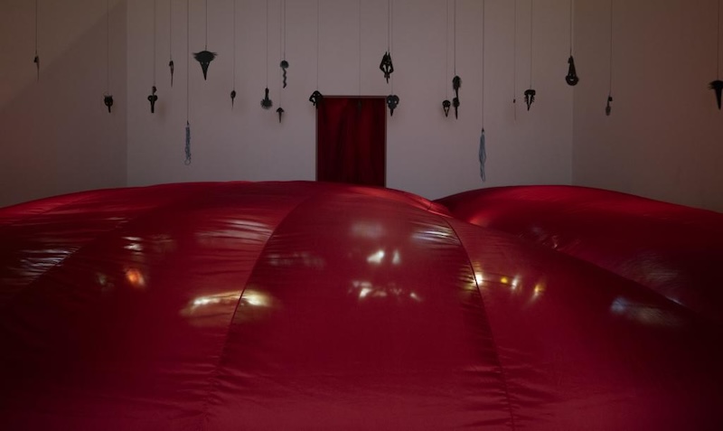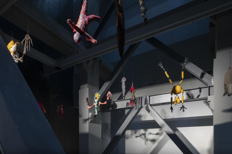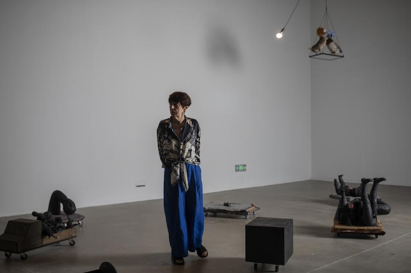 法国艺术家安奈特·梅莎吉在上海当代艺术博物馆自己的作品《依赖/独立》之中。