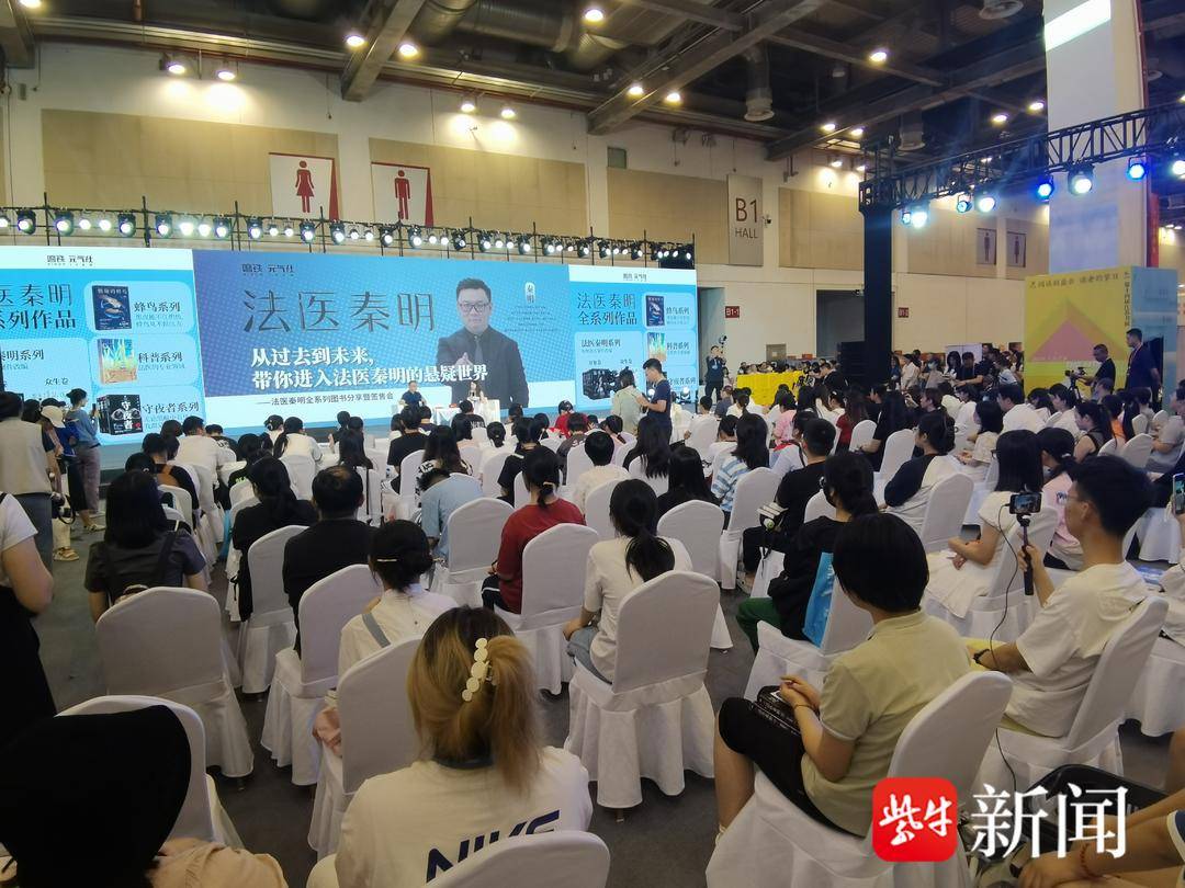 7月6日,苏州国际博览中心的中心舞台入场口排起了长长的队伍,队伍中的读者们手上抱着好几本法医秦明的书,还有的读者带着法医秦明的周边帆布袋,大家等待的是法医秦明今年的首场签售会。当日下午“从过去到未来,带你进入法医秦明的悬疑世界——法医秦明全系列图书分享暨签售会”成功举办,现场气氛十分热烈,读者们交流非常踊跃。