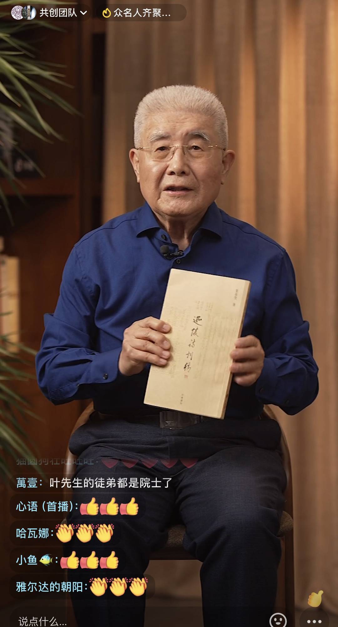 中国工程院院士、清华大学机械工程系教授、流体密封工程技术专家王玉明,在直播中分享自己学习诗词的经验、感受,以及自己从叶先生那里拜师学诗词的经过。有网友留言说,“叶先生的徒弟都是院士了!”