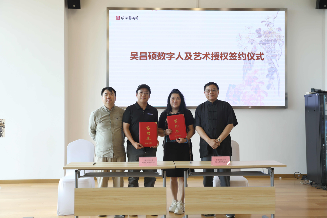 在活动中,上海市吴昌硕文化艺术基金会、上海西区文化传媒发展有限公司就吴昌硕数字人及艺术授权举行了签约仪式,这也标志着吴昌硕艺术数字化转型的开始,也体现了海派艺术馆在推动传统文化与现代科技融合中的积极作用,是海派艺术馆致力于创新与传承的生动体现。上海市吴昌硕文化艺术基金会还与杭州三达文化科技有限公司共同完成了上海市吴昌硕文化艺术基金会“抱朴含真”专项基金的签约仪式。主办方表示,抱朴含真,意味着保持本真,追求纯粹。