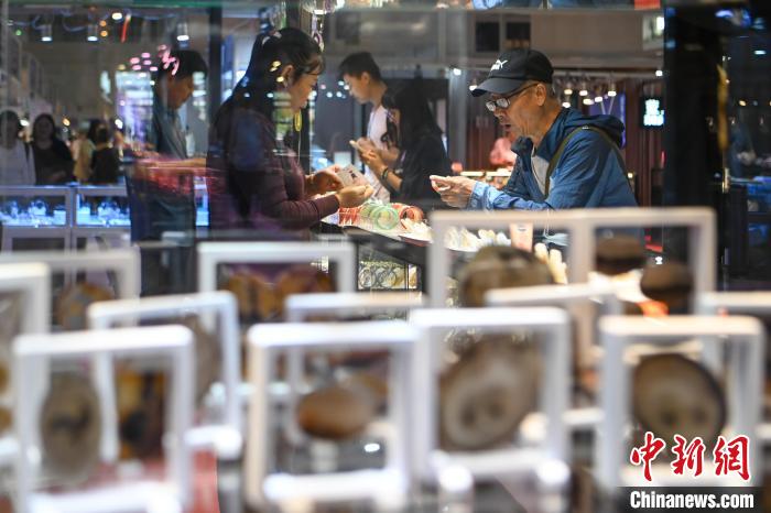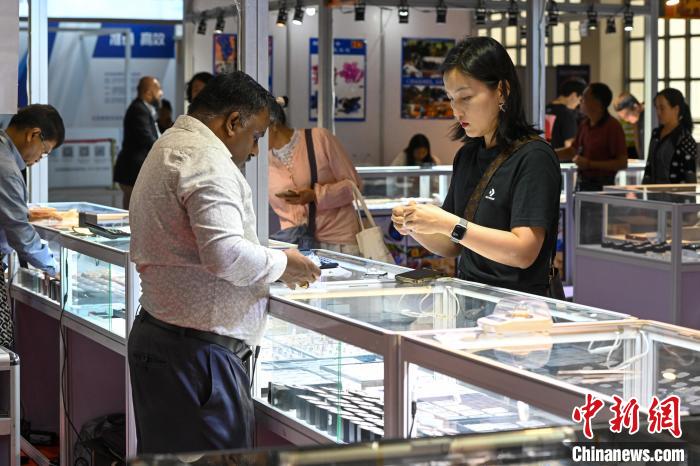 7月11日,参观者挑选玛瑙。当日,2024中国昆明国际石博览会暨云南国际珠宝玉石展开幕,本届石博会围绕“珠宝玉石、赏石文化、非遗工艺”三大核心板块,设置国际品牌珠宝馆、时尚首饰馆、玉石翡翠馆、奇石馆、工艺美术馆。 中新社记者李嘉娴摄