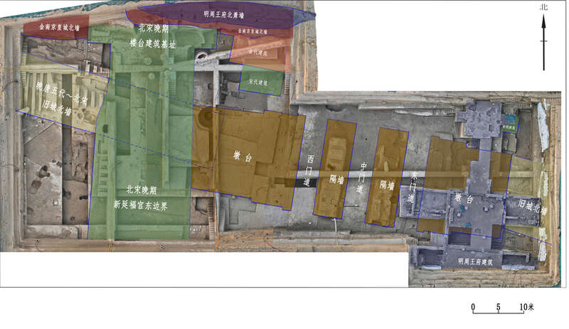 开封景龙门遗址是北宋东京城内城北墙中部城门遗址。城门整体结构为一门三道式,由门道、隔墙及两侧墩台构成,是目前考古发现北宋时期规模最大、规格最高的都城城门遗址,为认识北宋东京城结构布局、建筑制度提供了重要实证。