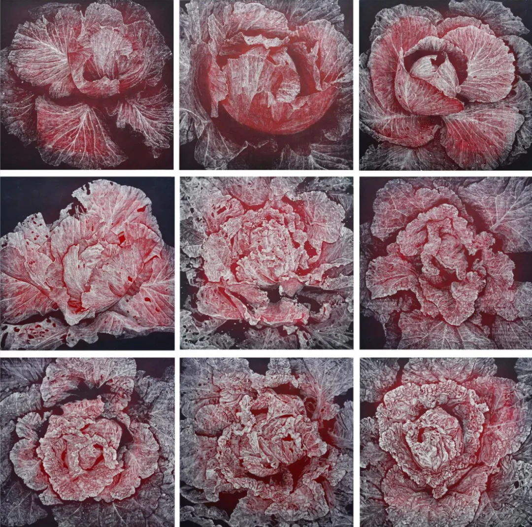 雷务武《凝霜绽放》版画276cm×276cm,2022年。