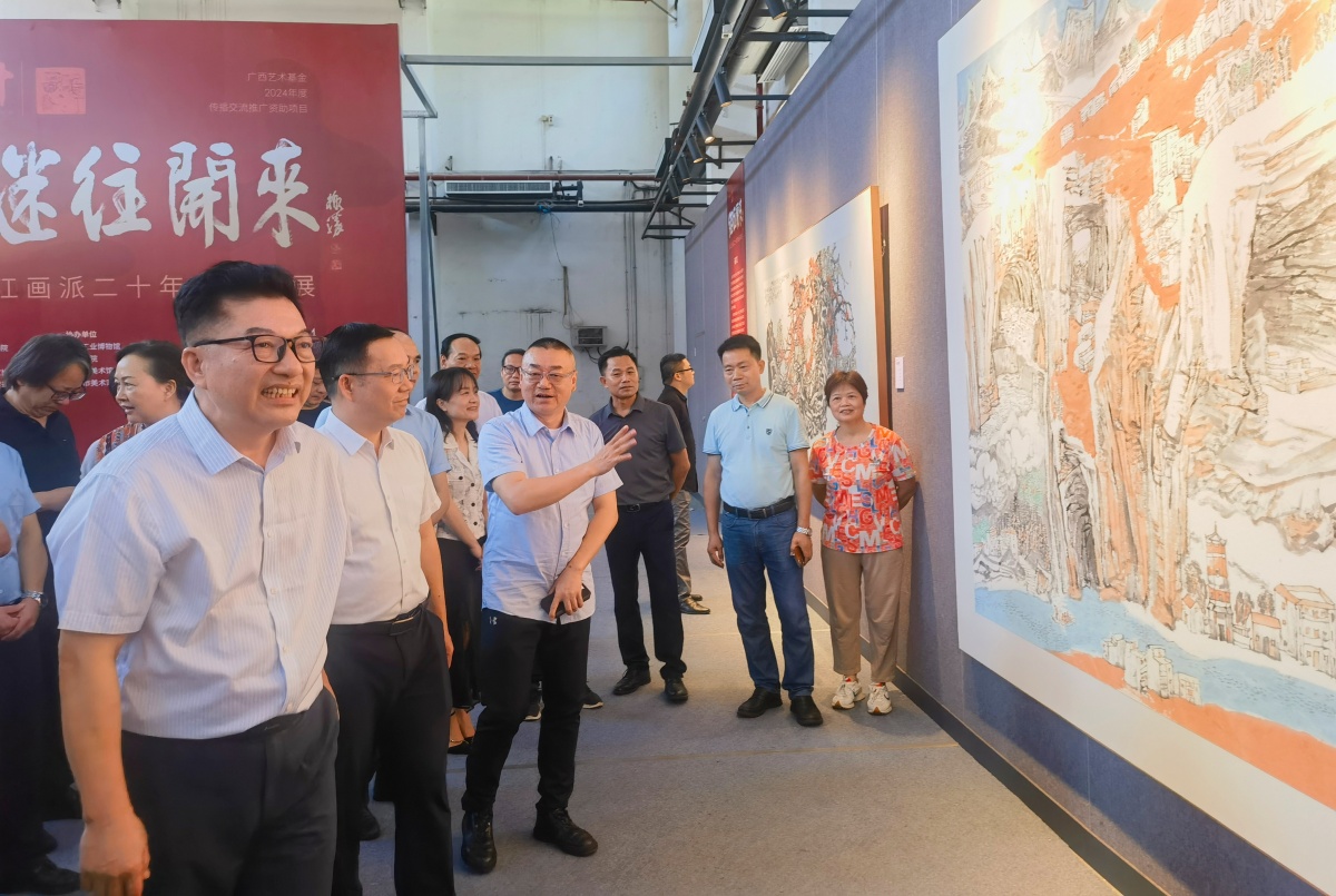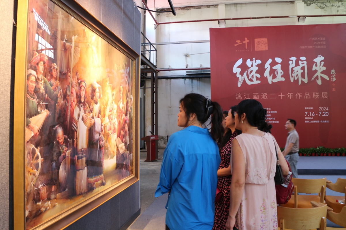 7月16日,柳州工业博物馆内文化氛围浓厚,一场视觉盛宴“继往开来——漓江画派二十年作品联展(柳州站)”在此开幕。此次展览汇聚了漓江画派老中青三代艺术家精心创作的60余幅佳作,涵盖中国画、油画、水彩画、版画等多种艺术形式,共同织就了一幅幅广西自然美景与人文风情的壮丽画卷。