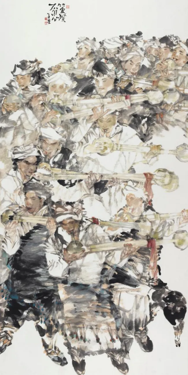郑军里《笙声不息》中国画228cm×114cm,2019年。