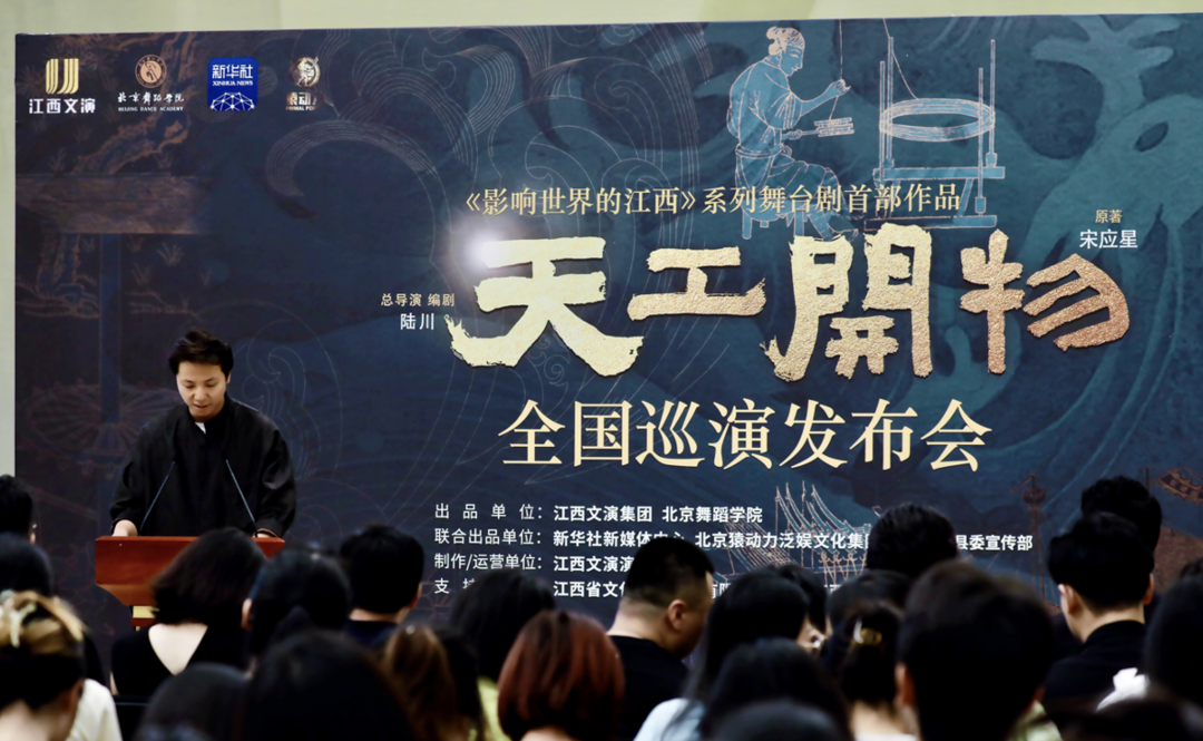 江西文演集团党委副书记、常务副总经理练红梅表示,江西文演集团策划推出了“影响世界的江西”系列舞台剧,开篇之作舞剧《天工开物》以江西籍明朝著名科学家宋应星及其著作《天工开物》为题材,通过舞台艺术致敬影响世界的中华文化和古代先贤,以守正创新的正气和锐气,大力弘扬“科学精神”,传承“中国智慧”,赓续历史文脉、谱写当代华章。