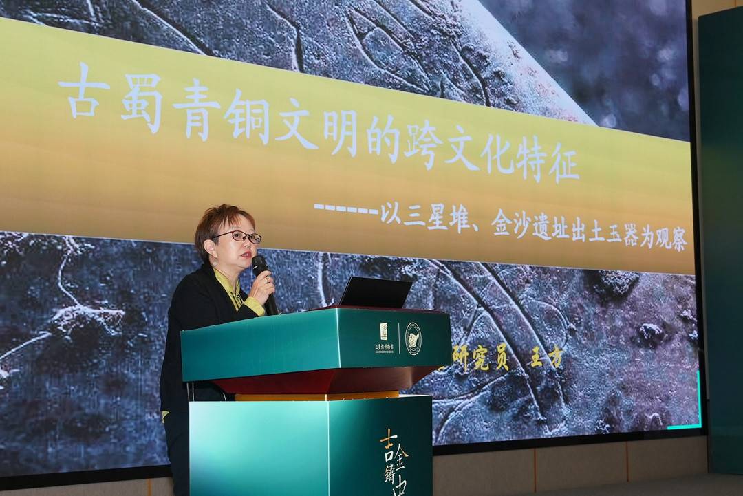 在青铜器之外,也有专家学者将目光投向了三星堆遗址出土的其他类型的文物。譬如,成都金沙遗址博物馆副馆长、研究馆员王方,就带来了《多元、融合与创新——论三星堆-金沙玉器的跨文化特征》。她表示,通过研究与分析,发现以三星堆、金沙为代表的古蜀青铜文明从其缘起到发展的过程中,都曾受到其他区域多元文化因素的影响与冲击。特别是以玉器为观察点,发现从器物类型、玉器组合、加工技术以及装饰特征等方面,都明显继承和保留了许多外来文化因素。