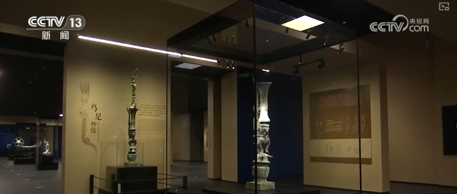 在展览中心展柜中,出土于三星堆遗址8号“祭祀坑”的青铜瓿吸引大量观众关注,这是三星堆从未展出过的青铜器器型。