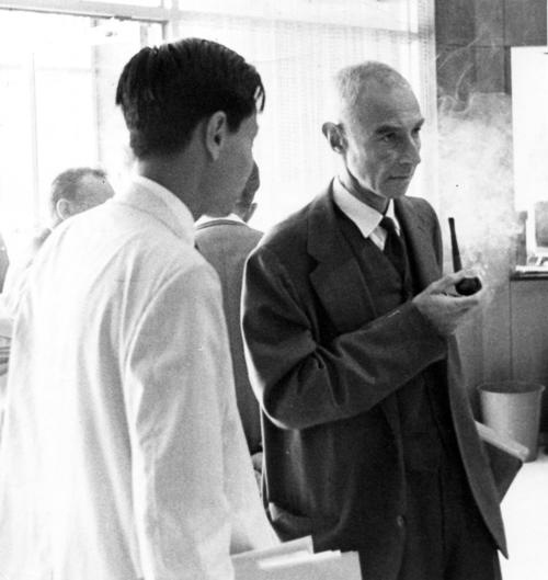 讲座结束后,伯恩斯坦走上讲台,做自我介绍。一开始,奥本海默“以冰冷的目光看着我,其中的敌意让人记忆犹新”,但是当伯恩斯坦对他说,他秋天就要到研究院工作时,“他的态度完全改变”: