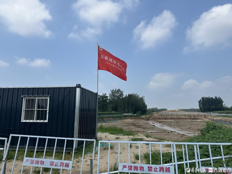 在发掘现场的东侧,两间板房上插着山东省文物考古研究院东张遗址考古队的队旗,记者在板房外发现,板房里已经没有了工作人员。