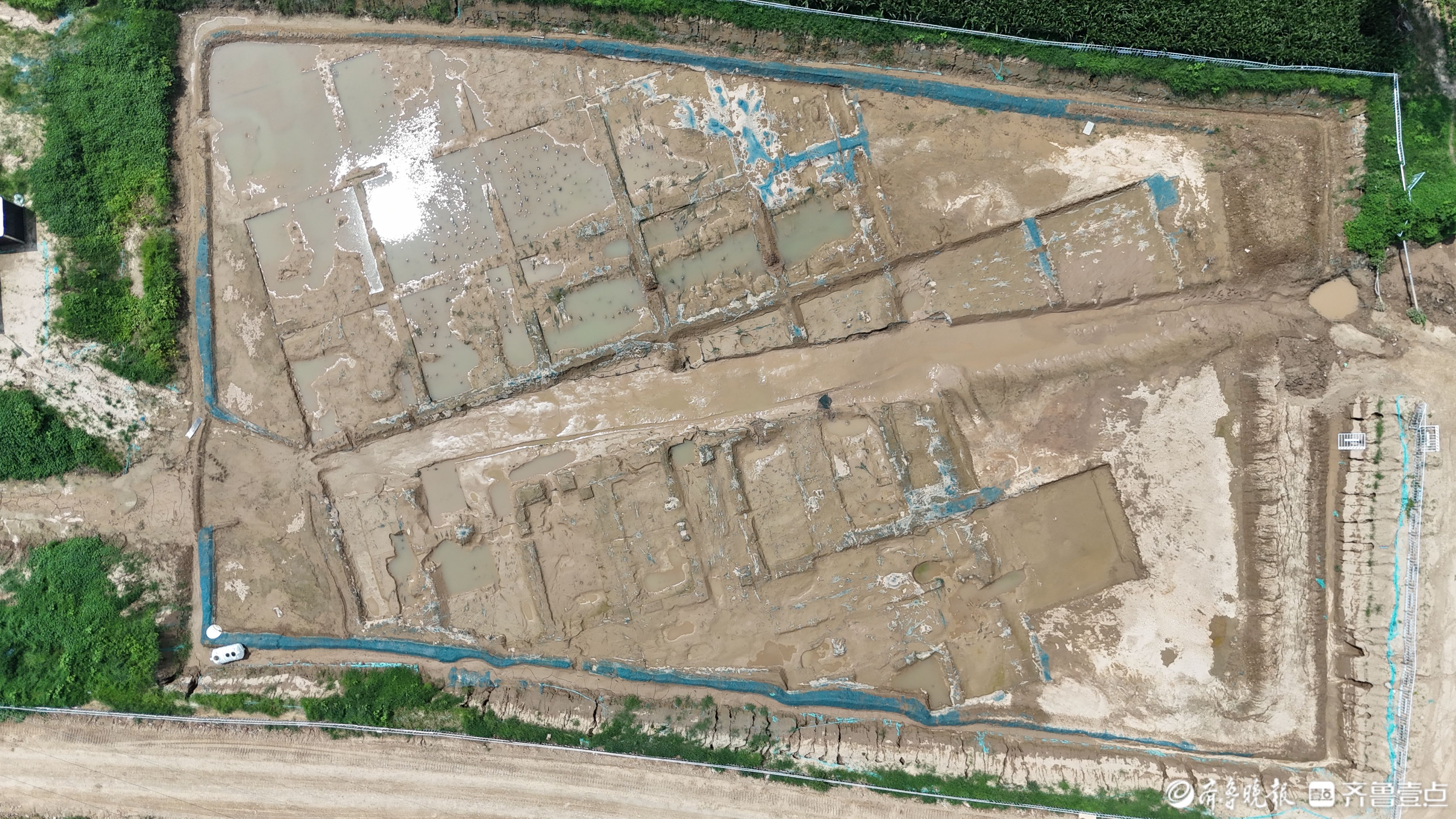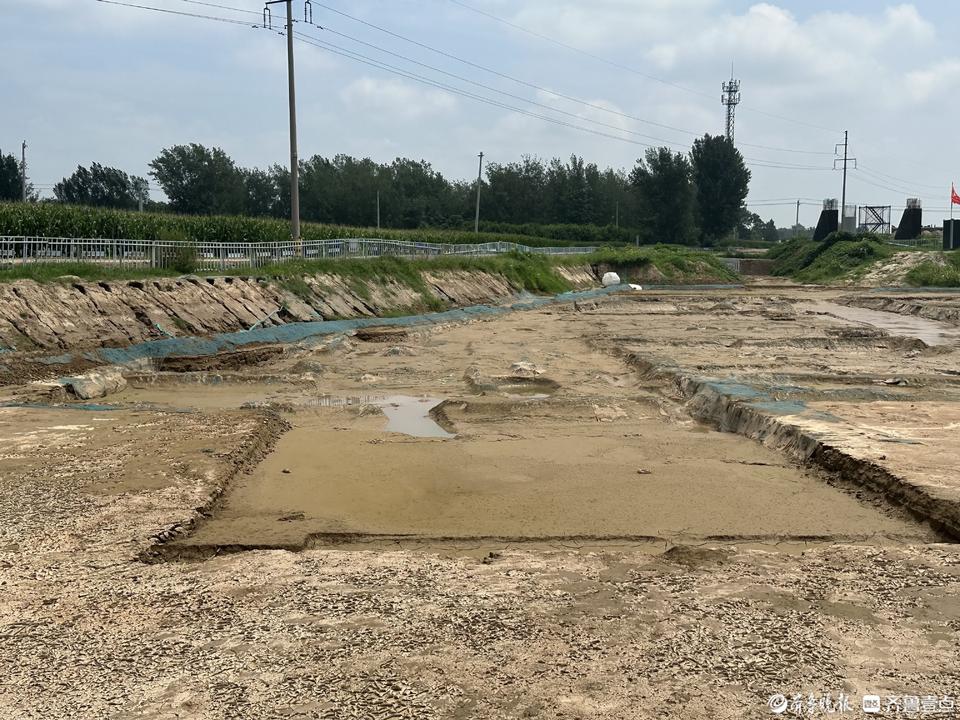 8月5日上午,记者来到了位于聊城市阳谷县大布乡东张村东北角的东张遗址考古发掘现场。记者在现场看到,考古发掘现场位于地下两米多的位置,东西长100多米,南北长50多米。考古发掘现场被栅栏围了起来,因8月4日晚上此处下了大雨,导致发掘现场存在着不少积水。