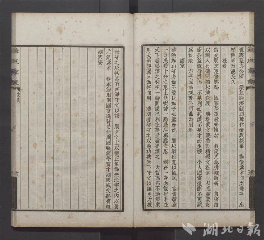 湖北省图书馆馆藏的民国时期湖北黄冈《方氏宗谱》、湖北黄冈《陈氏宗谱》、湖北江夏《傅氏宗谱》将在展览中展示。《方氏宗谱》记录:始祖方兴一,明洪武初自江西瓦屑坝迁湖北黄冈;《陈氏宗谱》记录:元至辛卯年间有陈文三自江西省饶州府洛平县瓦屑坝迁入黄冈谢蒲庄;《傅氏宗谱》记录:始祖傅铭九,由江西南昌府瓦屑坝迁居湖北武昌府江夏县东乡保安一里五堡仓基领。