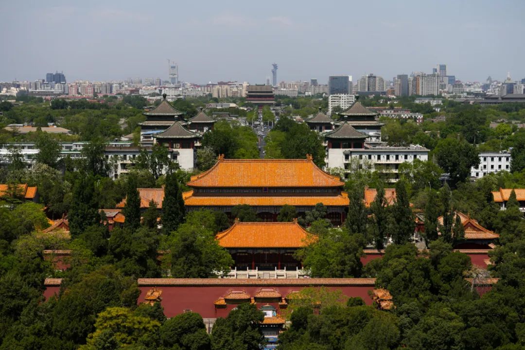 △在景山公园上拍摄的北京中轴线风光(2023年4月29日摄)。新华社记者 鞠焕宗 摄