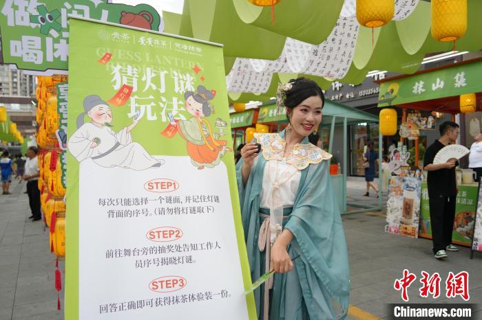 图为游客在抹茶雅集活动现场游玩“打卡”。周燕玲摄
