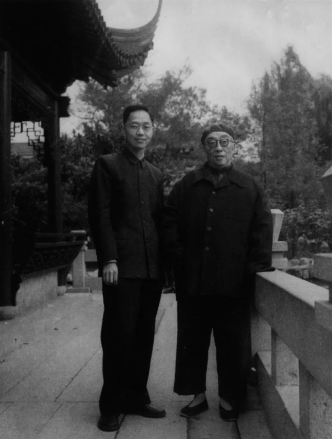 徐伯清(右)与谢稚柳(中)、戴小京(左)