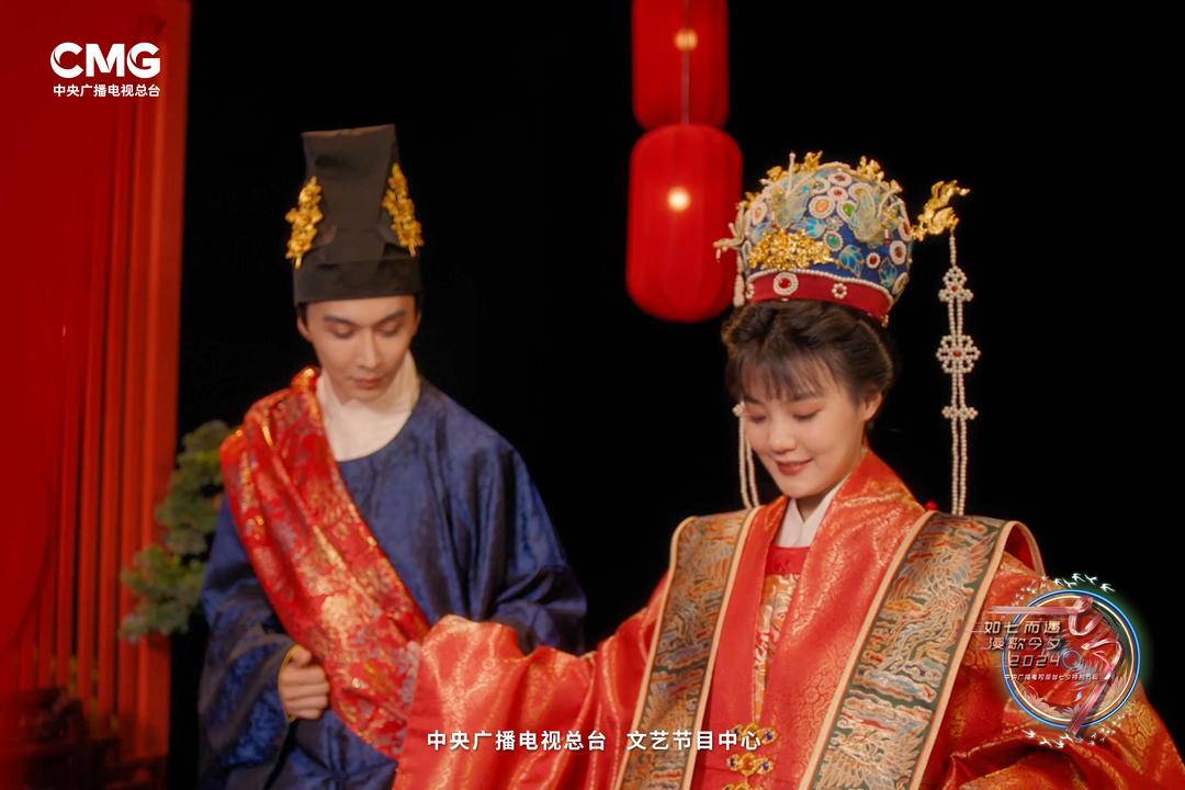 随着《又是七月七》这首开场歌曲的悠扬旋律,节目的序幕缓缓拉开,一系列节目相继上演,它们不仅展现了七夕的多彩传统习俗,更充满了青春的活力与热情。音乐故事短片《跨越千年的爱恋》以一场特别的“婚服秀”,将中华文化的气韵与风华巧妙地串联起来,为观众徐徐展开一幅跨越千年的婚服画卷,让人仿佛穿越时空,感受到历史的厚重与文化的传承。