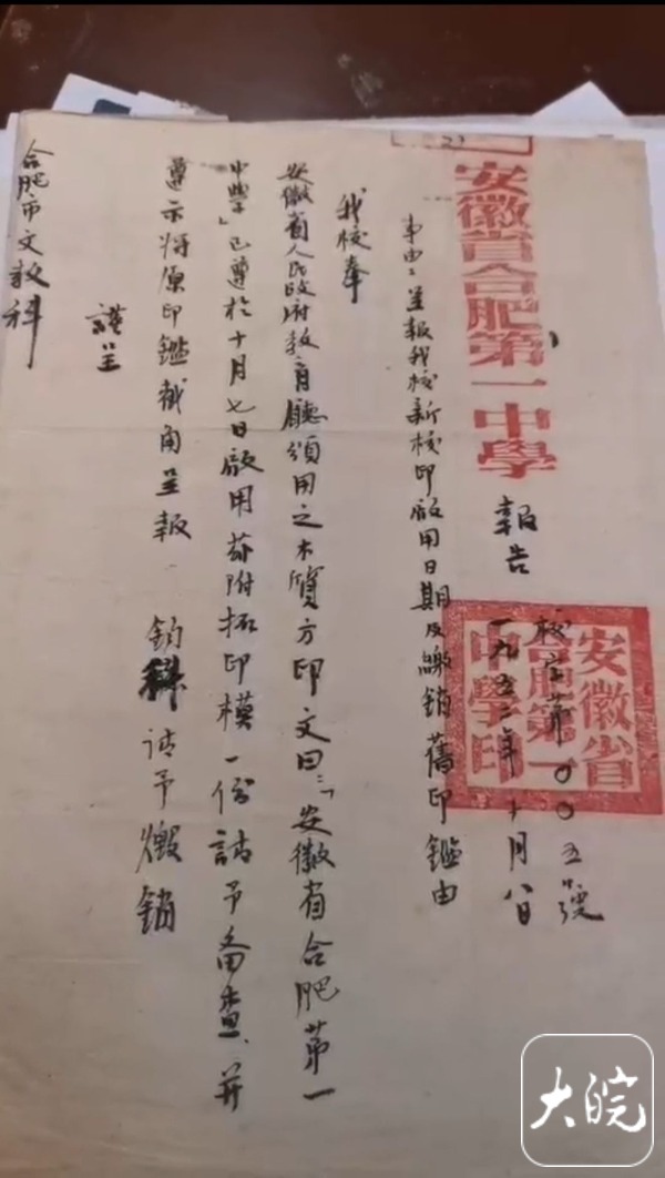在上世纪五十年代初,还存在一些私立学校,“比如这个合肥益民业余补习社,存在时间就很短,之后就裁撤合并了,这个学校的印模也是一个历史见证。”