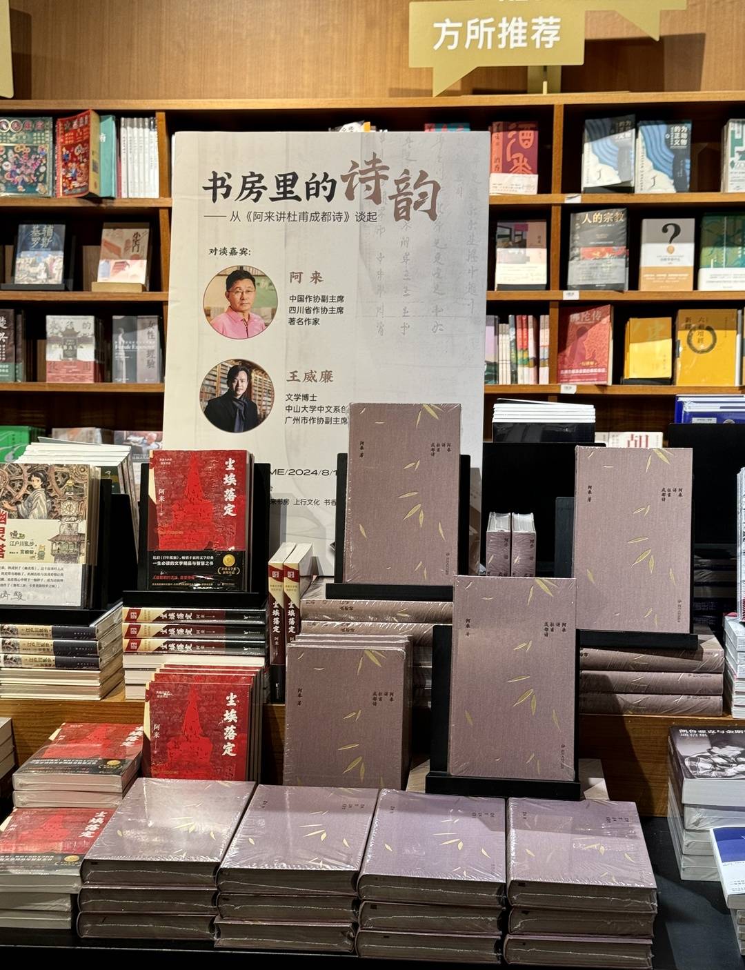 8月16日-8月20日,2024年南国书香节暨羊城书展在广州举行。阿来携新书《阿来讲杜甫成都诗》与众多名家开启多场直播对谈,畅聊文学经典。8月16日下午,阿来与中山大学中文系创意写作教研室主任王威廉,以《书房里的诗韵》为题,围绕“杜甫之于中国文学的意义”“古典文学与现代写作的关系”等等话题,进行了一场精彩的对话。