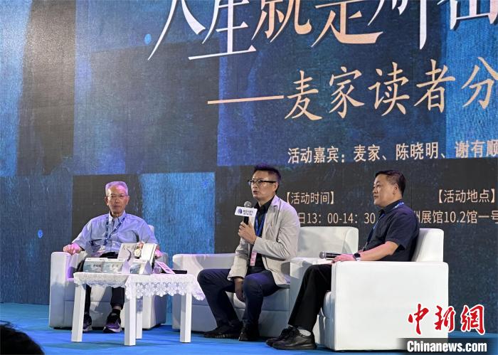 8月16日,著名作家麦家(中)亮相2024南国书香节。 中新社记者程景伟摄