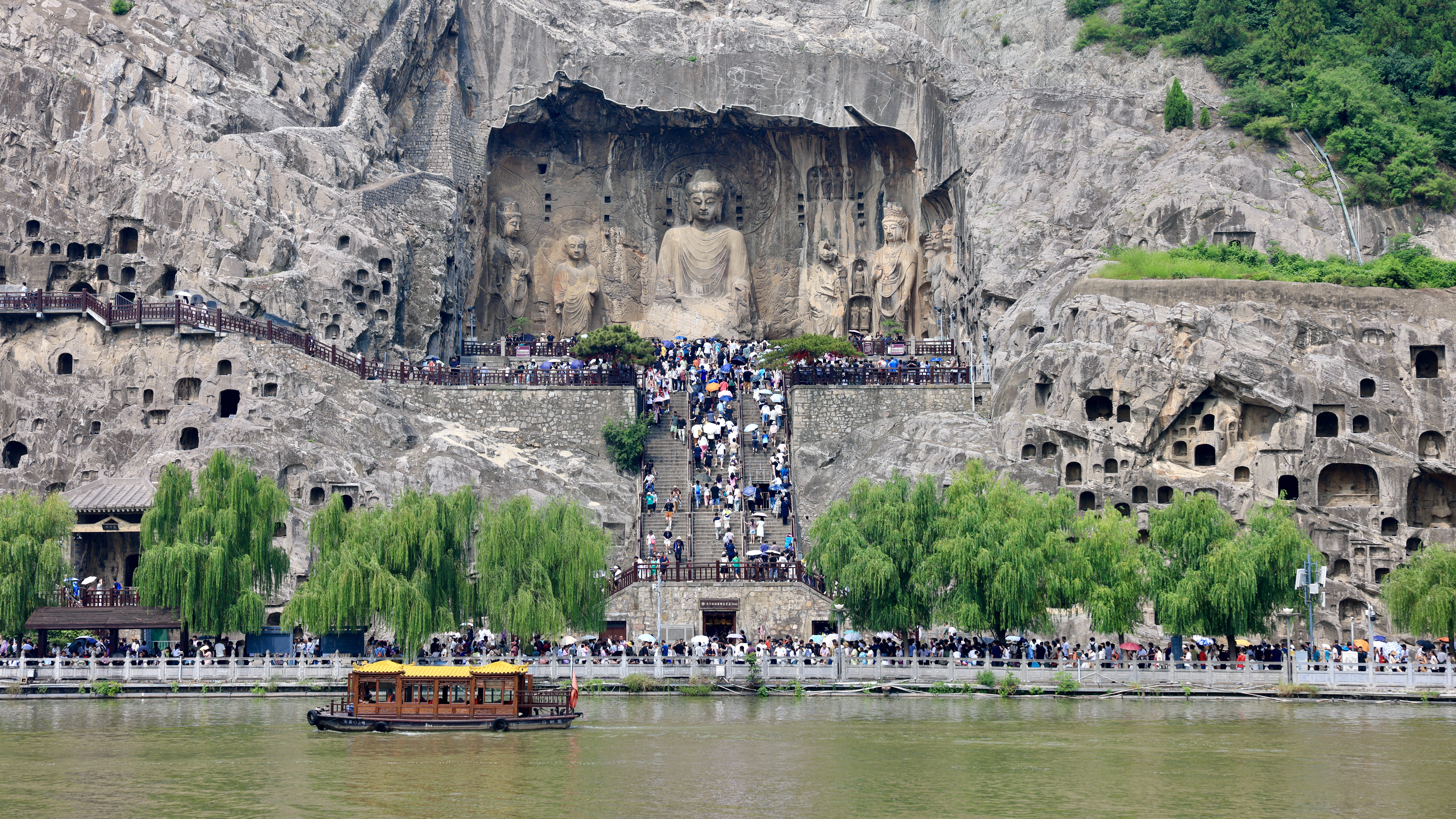 龙门石窟景区游人如织。