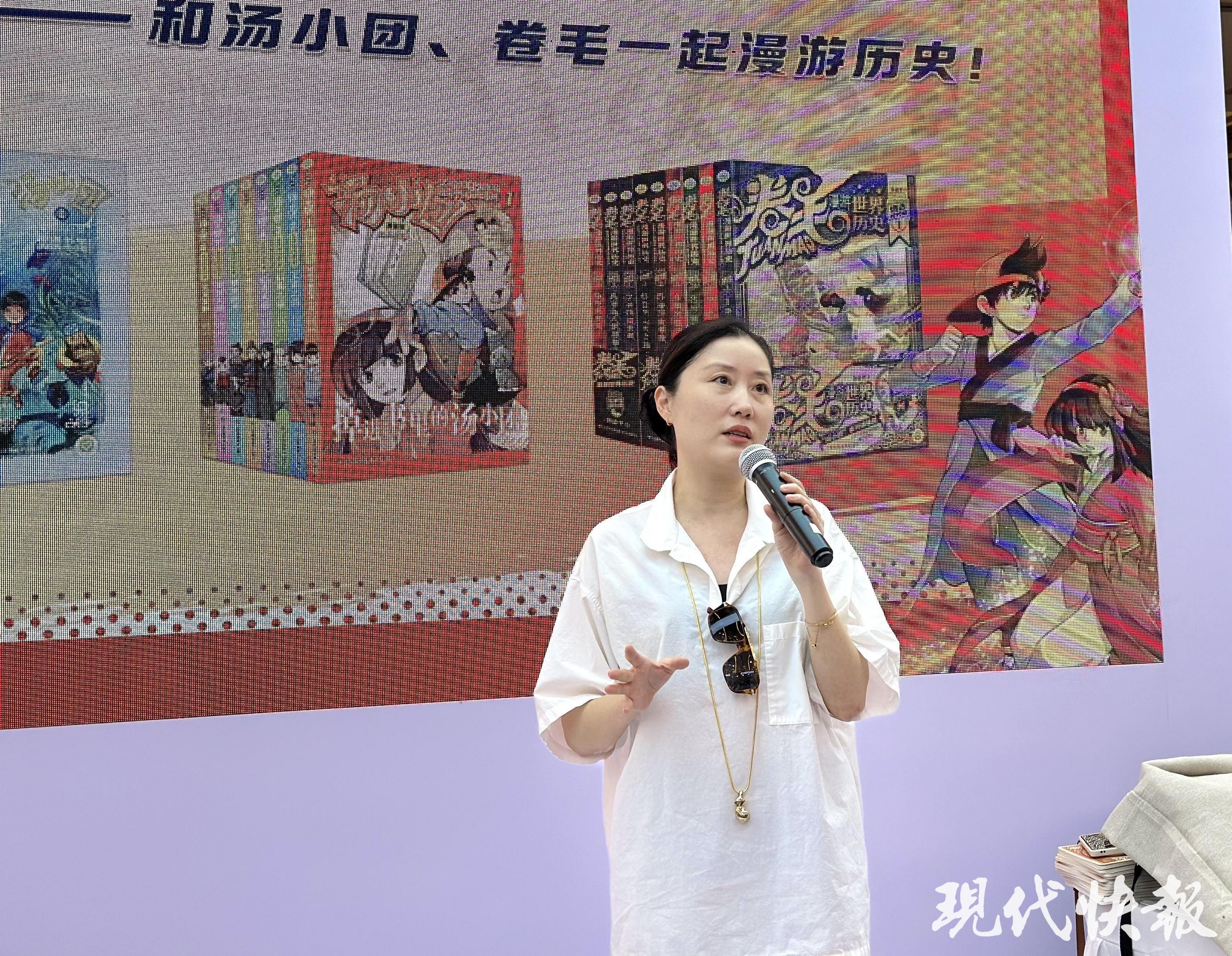 8月17日上午,原创儿童历史小说“汤小团漫游中国历史系列”与“卷毛漫游世界历史系列”图书作者谷清平来到“2024上海书展”的活动现场,为小朋友们讲述妙趣横生的中外历史故事。