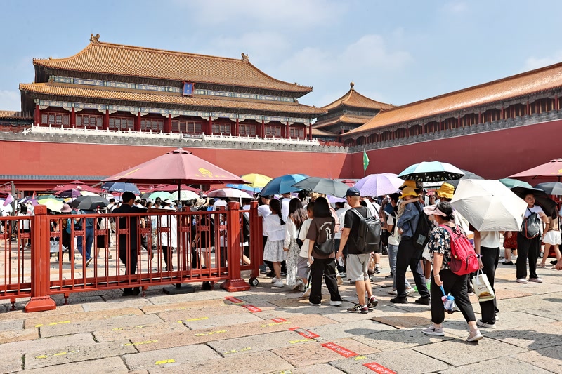 故宫每天4万人次的预约限流接待措施,也是其作为世界遗产的最佳承载量。进入暑期以来,故宫根据北京市文化和旅游局对重点旅游景区提出的游客接待调控指导意见,积极应对来京旅游客流高峰,在票务管理、安全管理、开放接待等方面采取了多项措施,通过宣传引导游客错峰出行,提升游览的安全度、舒适度和满意度。