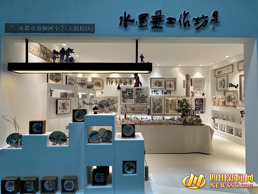 拥有浓厚三星堆元素的德阳广汉“丹青墨语”书画工作坊吸引了一拨拨书画爱好者前来体验。来自自贡的“墨林篆韵”书画传习工作坊则是将书画与篆刻完美结合,精心设计了四个主题展区,让大家直观领略书画艺术之美……