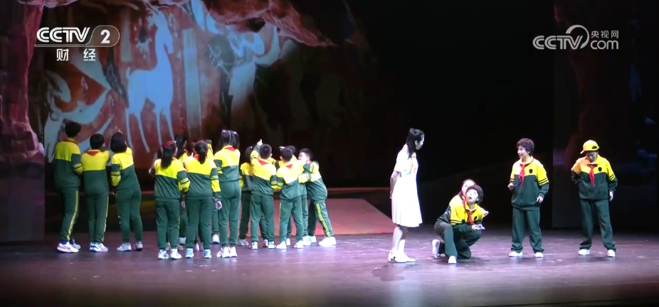一场数字音乐儿童剧《敦煌·九色鹿王》正在观众席上演,与以往观演体验不同,这部剧不仅拥有近距离的体验环节,还通过戏剧、木偶、音乐、歌舞、数字技术等融合手段,讲述了孩子们穿越千年时光、在大漠敦煌发生的趣味十足的成长故事。