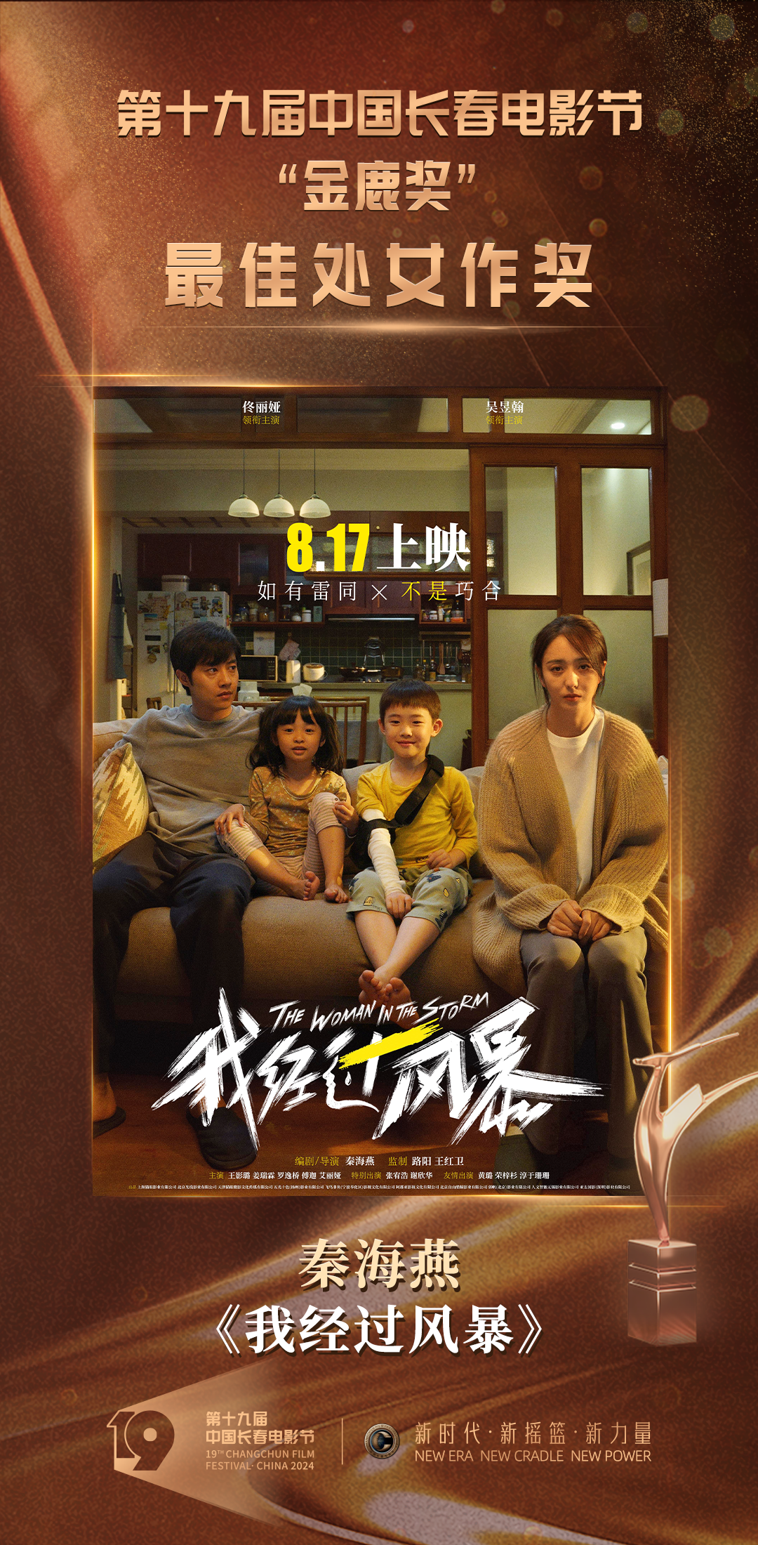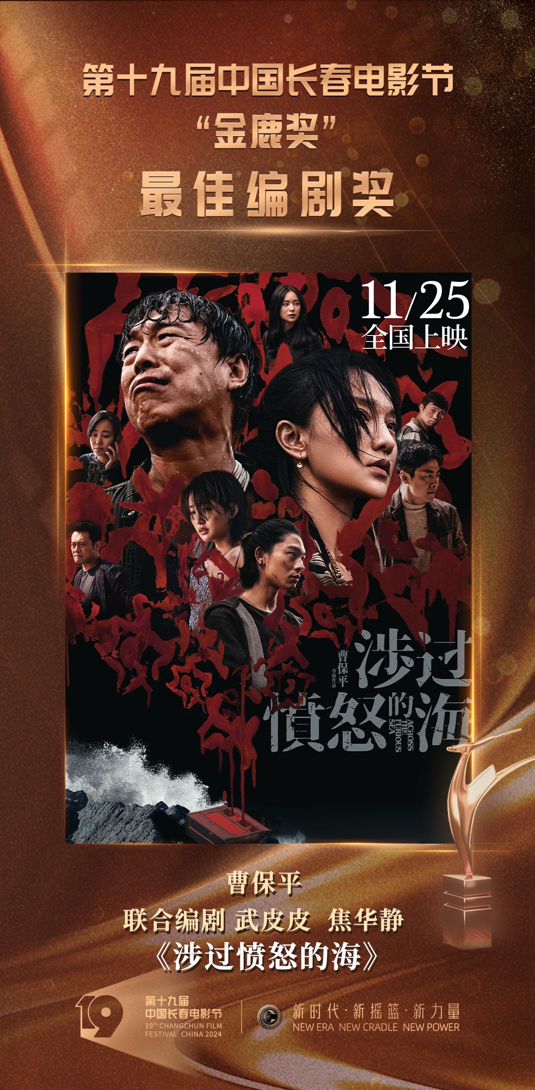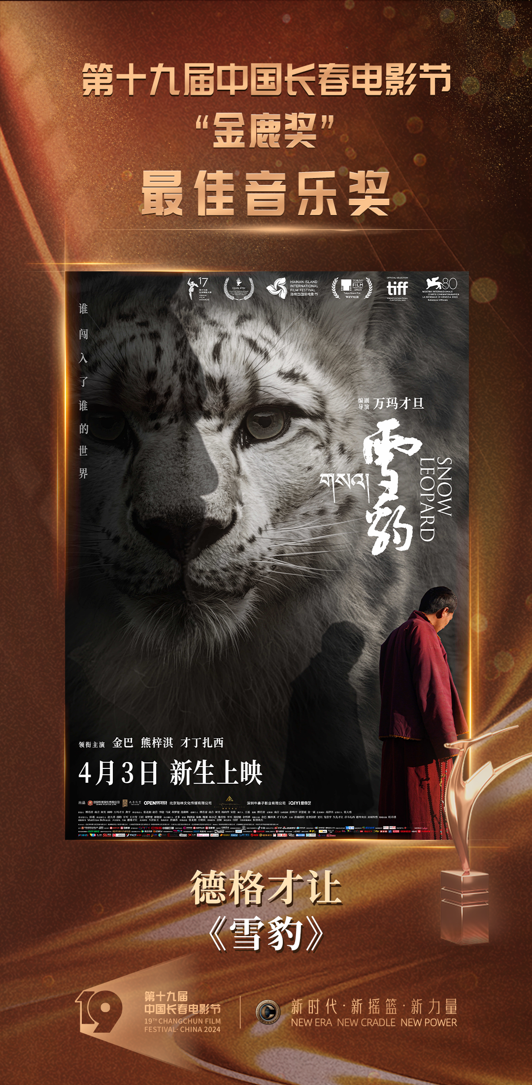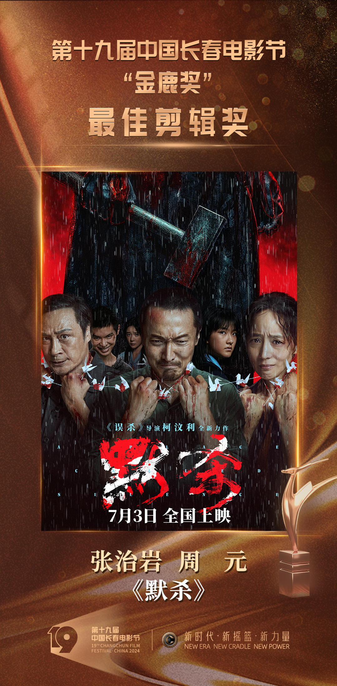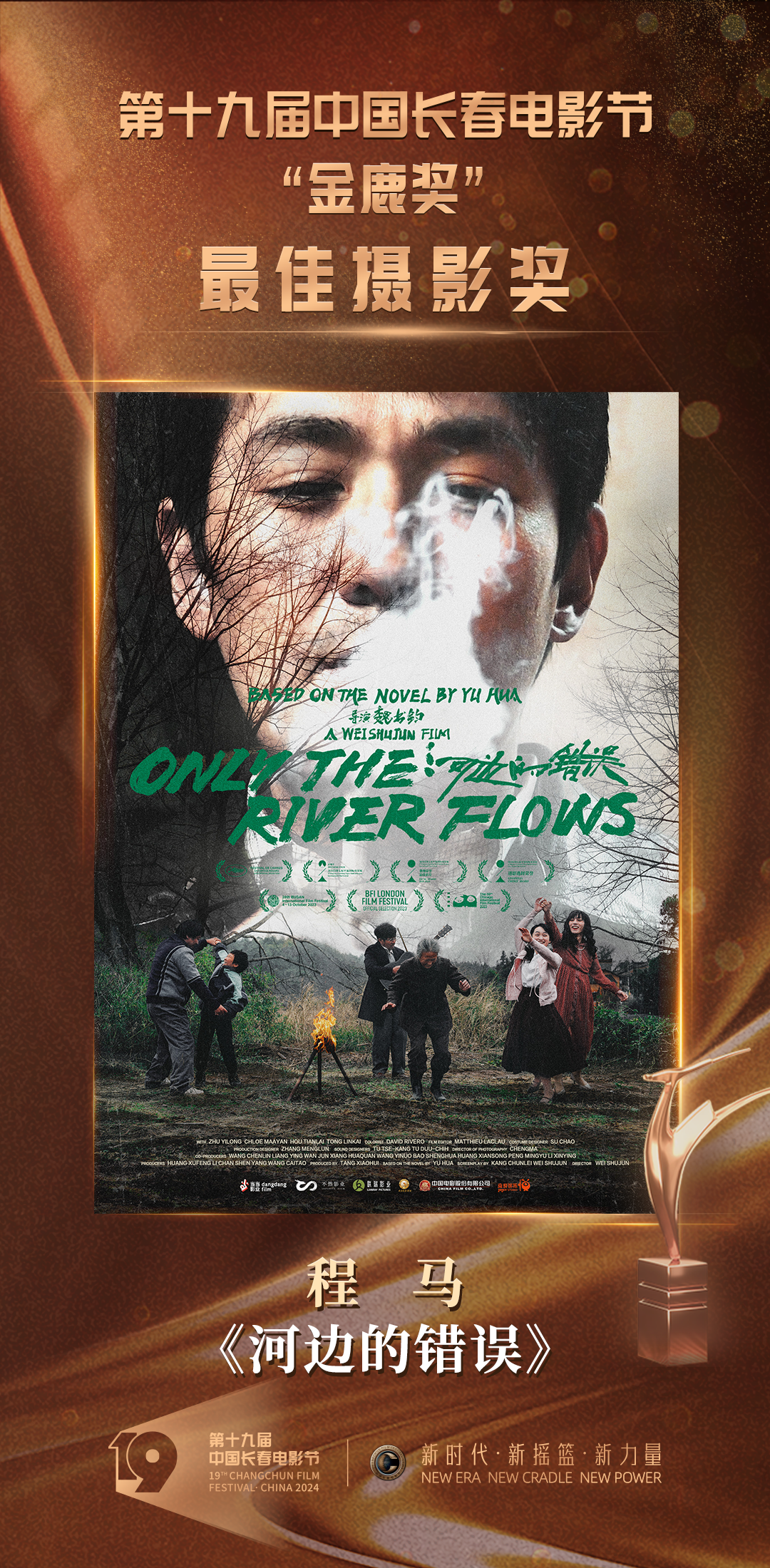 当晚,开场秀·光影之旅《圆》揭开活动序幕,新颖的舞美设计和节目呈现引人入胜。随后,情境讲述《缘》、金鹿仪式《光影之旅》等创新节目相继登台,令欣然奔赴“电影城”的八方宾朋感受到了底蕴深厚的长春元素、长影记忆,擦亮了“金鹿奖”这一华语电影界评奖品牌。随着颁奖典礼进程的推进,在各路嘉宾的共同见证下,本届“金鹿奖”最佳影片奖、评委会大奖、最佳导演奖、最佳男演员奖、最佳女演员奖、最佳编剧奖、最佳摄影奖、最佳音乐奖、最佳剪辑奖、最佳处女作奖十个奖项诞生。电影《抓娃娃》获评委会大奖,《志愿军:雄兵出击》获最佳影片奖,张艺谋凭借《第二十条》获最佳导演奖,最佳男、女演员奖则被出演《我们一起摇太阳》的年轻演员彭昱畅、李庚希摘得。随着各奖项谜底的揭晓,第十九届中国长春电影节圆满落下帷幕。