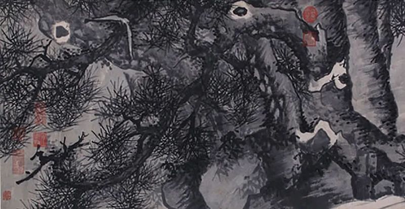 明代沈周《墨松图(局部)》纸本设色,吉林省博物院(东北抗日联军纪念馆)